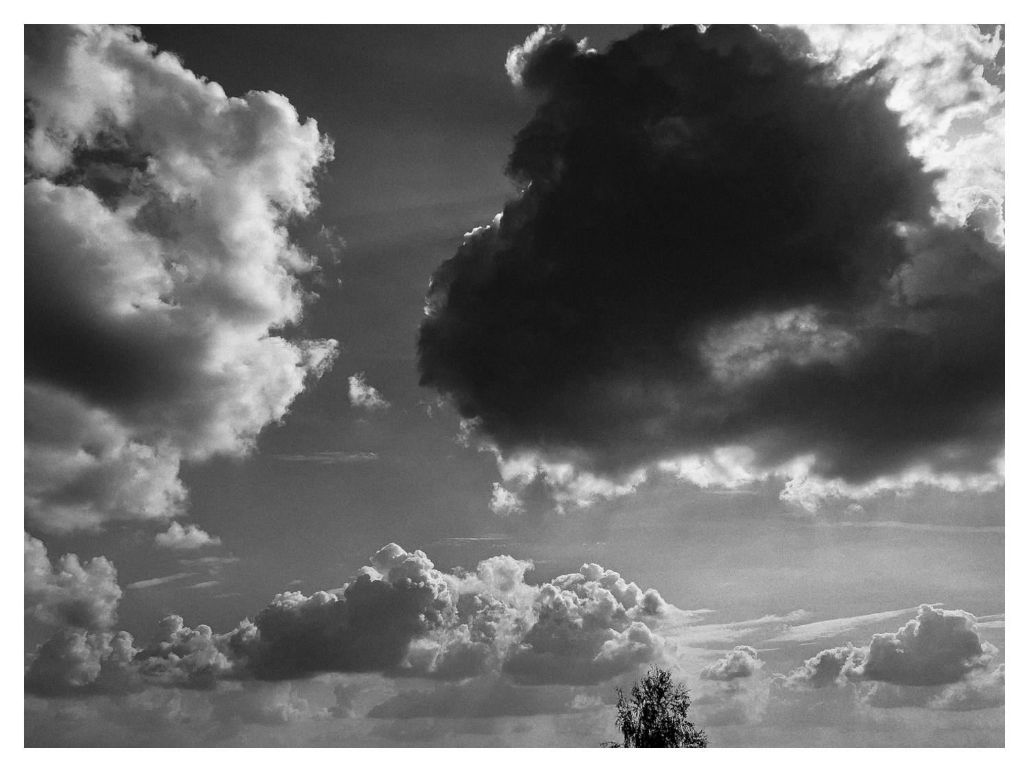 Auf dem Weg Richtung Prag begegnen mir imposante Wolkentürme, die grosse Schatten über die Landschaft legen und selbst an einem späten Sommertag gespenstische Stimmungen erzeugen. Die schwarz-weiss Fotografie verstärkt die Lichtkompositionen beeindruckend.